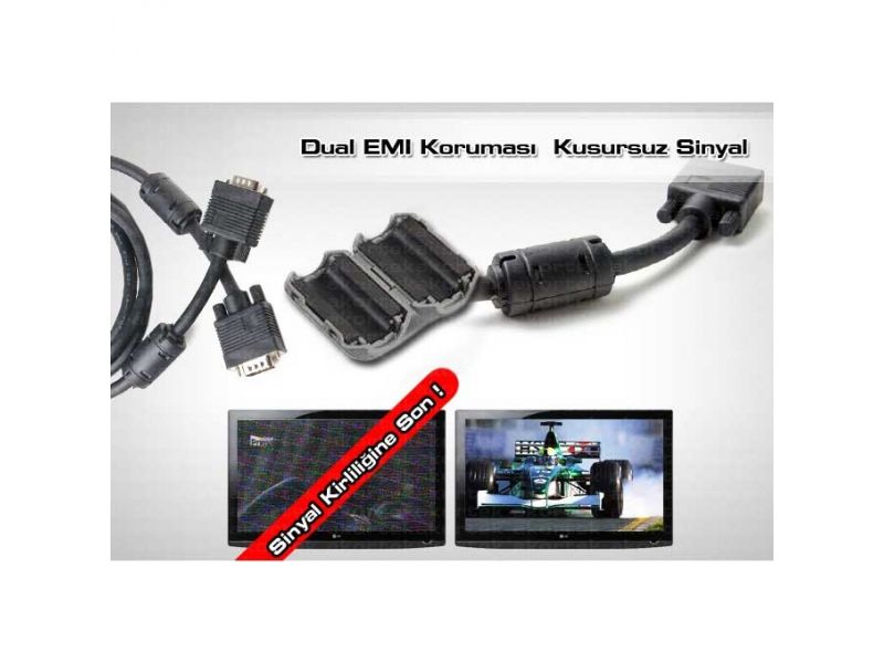 Elektriğe bağlı olarak elektronik cihazların ürettiği elektronik kirliliği ve kablosuz sinyallerin kablolar üzerindeki etkilerini sinyalden arındırmak için Dark VGA kablo çift Ferrit Core'a sahiptir. Dark VGA kablosu kusursuz görüntü kalitesine sahip olmak için kablonuzdaki EMI/RFI gürültülerini yok eder.
