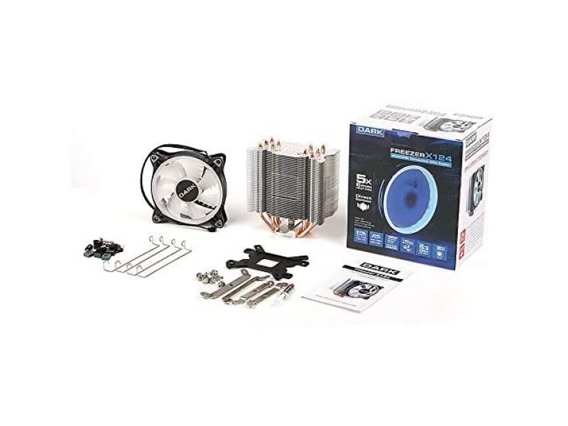 Dark Freezer X124B Intel/AMD ve Ryzen Serisi İle Tam Uyumlu 120mm Mavi Halka LED'li, 5x 6mm Isı Borulu İşlemci Soğutucusu