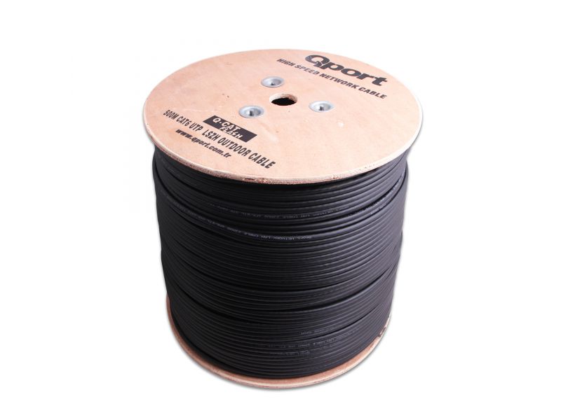 QPORT Q-CAT02 500MT UTP CAT6 OUTDOOR NETWORK KABLO SIYAH 23AWG 0.58MM