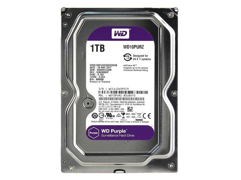 WD PURPLE 1TB 5400RPM 64MB SATA3 6Gbit/sn WD10PURZ 7/24 HDD