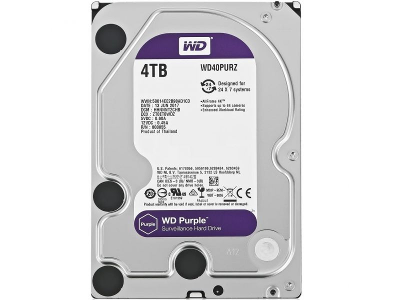 WD PURPLE 4TB 5400RPM 64MB SATA3 6Gbit/sn WD40PURZ 7/24 HDD